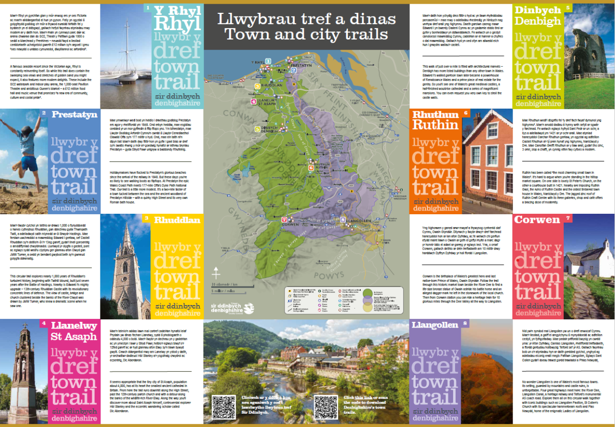Use are useful pocket guide to explore our towns in Denbighshire. Each with a QR code to download each town trail.